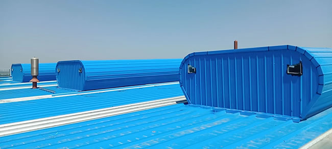 通風天窗是鋼結構廠房屋頂通風器的一種常用類型,其外形優(yōu)美、圓潤、技術含量高、通風量大、風阻力小、性價比高、而且還可以通過閥板的啟閉來控制溫度和排氣量,適用性非常強,幾乎可用于任何需要通風的工業(yè)廠房車間。