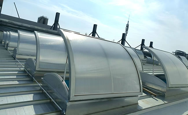 圓拱形的設(shè)計,外觀優(yōu)美、通風(fēng)排煙兼顧自然采光,開啟角度一般為30度到45度***開啟角度為90°。