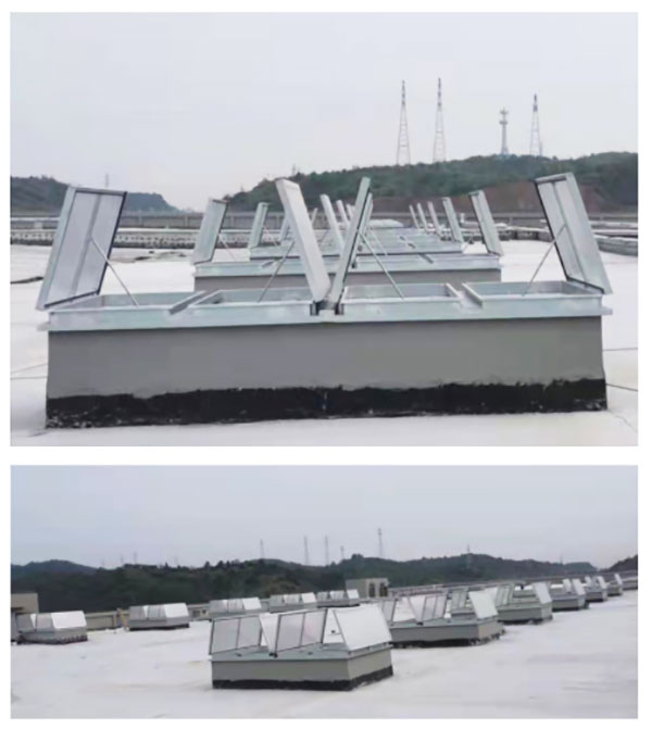 一字型外觀,兼具采光于通風(fēng),并可有效減少風(fēng)壓阻力,天窗頂部可采用采光板或玻璃,開啟電機設(shè)計成24V安全電壓,可連接消防聯(lián)動控制系統(tǒng)及風(fēng)、雨、煙感應(yīng)器。***開啟角度為60°-90°。系統(tǒng)可隨意消防聯(lián)動使用并具有手動控制系統(tǒng)。