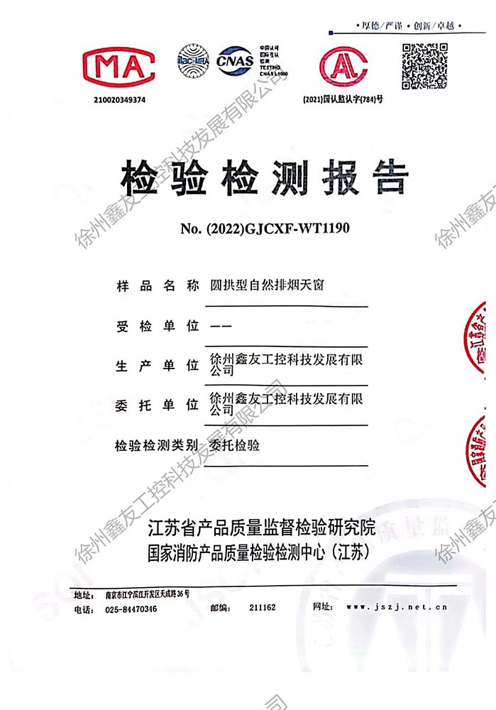圓拱型電動排煙天窗檢測報告190