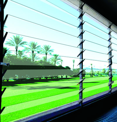 新式玻璃百葉窗遮陽系統(tǒng),完美上演“遮陽、裝飾、自然風(fēng)景”三重奏。玻璃百葉通透性***好,葉片選用透明或者磨砂玻璃等不同的材料,可以取得不同的視覺效果。玻璃百葉可以代替玻璃幕墻使用,既克服了幕墻不能開啟的缺憾,又保持了晶瑩剔透。